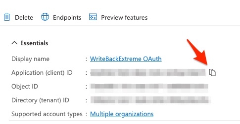 On the overview page, copy the client ID. You need to provide this later on in the WriteBackExtreme Management console.