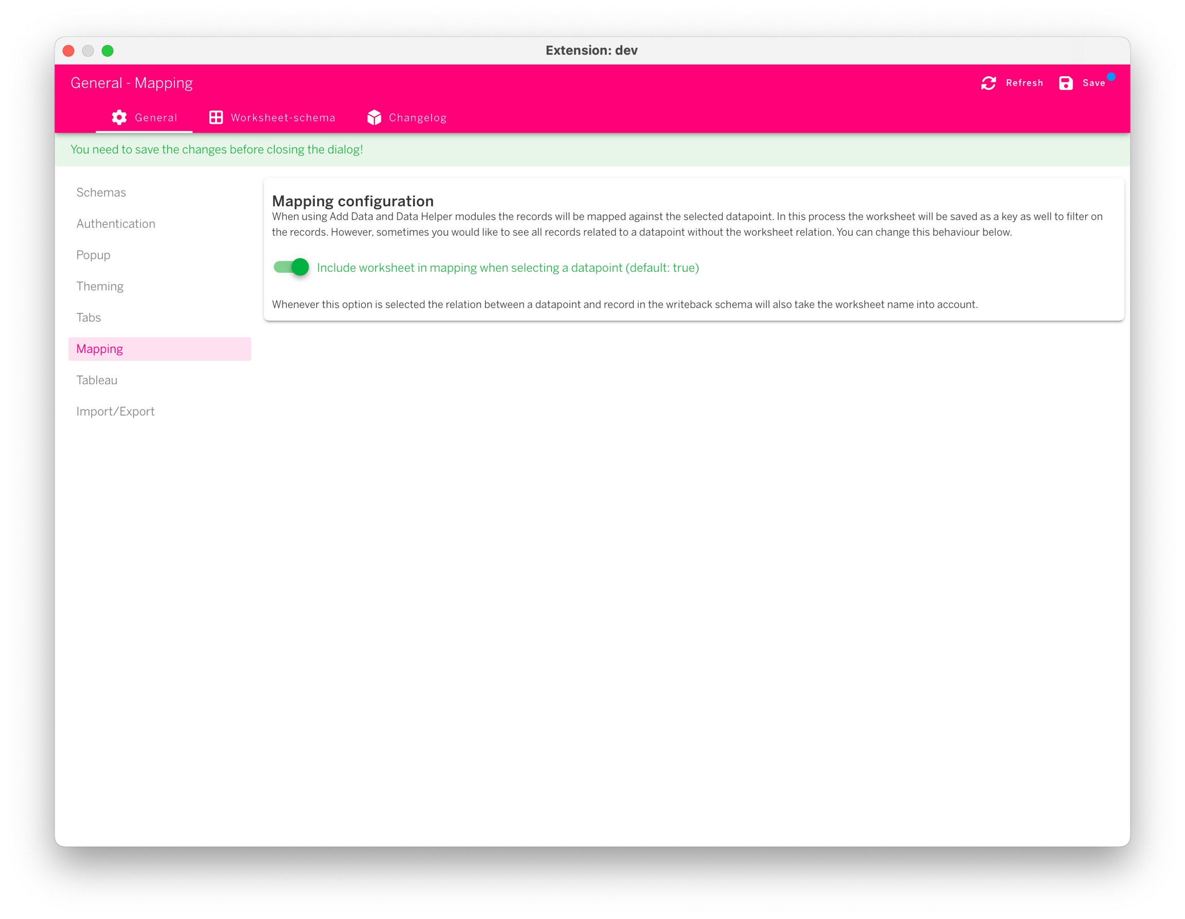 When using Add Data and Data Helper modules the records will be mapped against the selected datapoint. In this process the worksheet will be saved as a key as well to filter on the records. However, sometimes you would like to see all records related to a datapoint without the worksheet relation. You can change this behavior below.