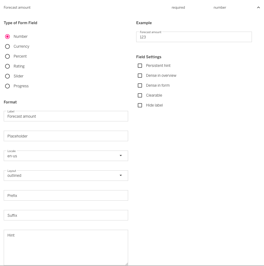 The number field support 6 different layout types all with their own use cases.
