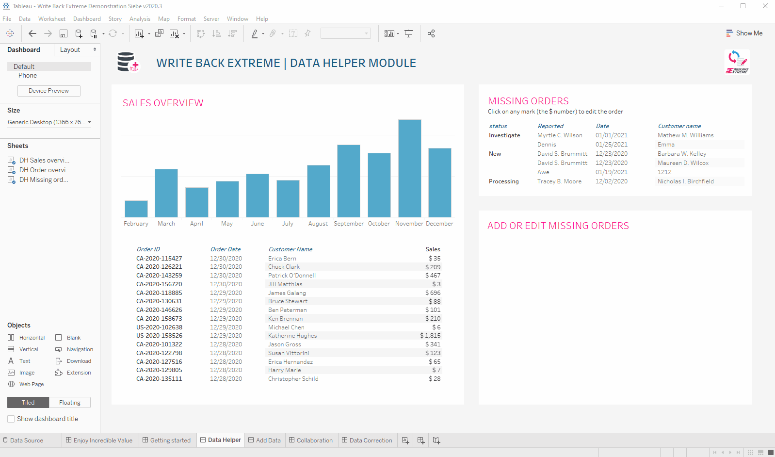 Drag the Tableau dashboard object “Extension” to the container where you want to place your extension